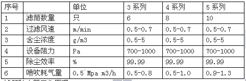 一般為負壓作業,含有粉塵的氣體有進風口進入濾筒除塵器內,在濾芯內負壓的作用下,經過濾芯過濾,進入潔凈室從出風口排出。當粉塵在濾料表面上越積越多,阻力越來越大,當達到設定值時,脈沖閥打開,壓縮空氣直接噴入濾筒中心,對濾筒進行順序脈沖清灰,使其恢復低阻運行。含有粉塵的氣體進入過濾室,比較大的粉塵顆粒直接落到灰斗,含有粉塵的氣體經過濾芯凈化,粉塵會粘附在濾芯的表面,干凈的氣體經過濾芯口到達靜氣室,在有引風機經煙筒排入大氣中。當濾芯便面的粉塵不斷的增加,導致除塵器內的阻力增加,當阻力增加到_的數值時,控制儀會發出信號,進行程序的控制,這時脈沖閥會逐個打開,壓縮空氣通過噴口對濾芯進行噴吹清灰,在壓縮空氣的噴吹下,附在濾芯上的粉塵層快速的脫離濾芯落入灰斗中,在由螺旋輸送機或卸灰閥直接排出。